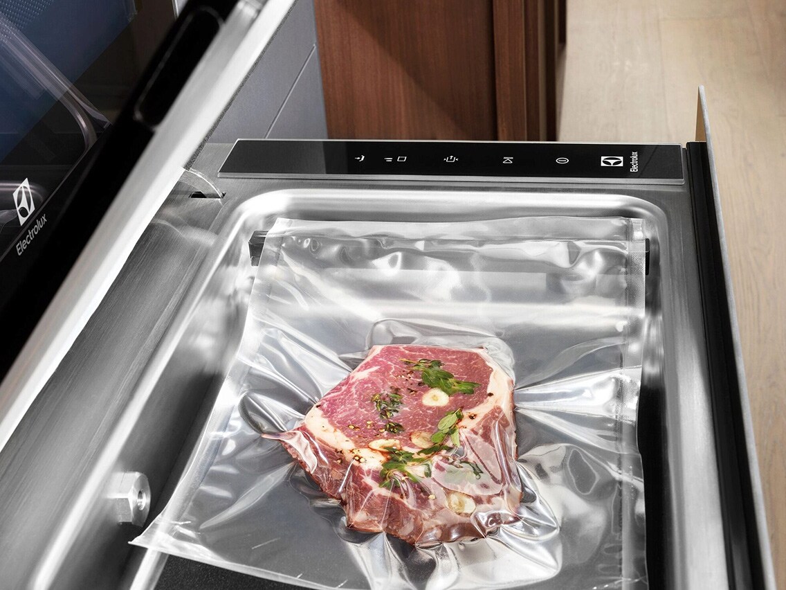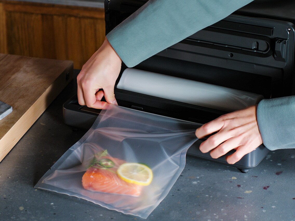 Gør hverdagen nemmere med en ekstern vakuumpakker. Forsegl ost, frugt, grøntsager og rester på få sekunder, mariner kød hurtigt eller forbered ingredienser til sous vide. Nem og hurtig at bruge, holder madvarerne friske længere og giver retterne perfekt saftighed og smag.