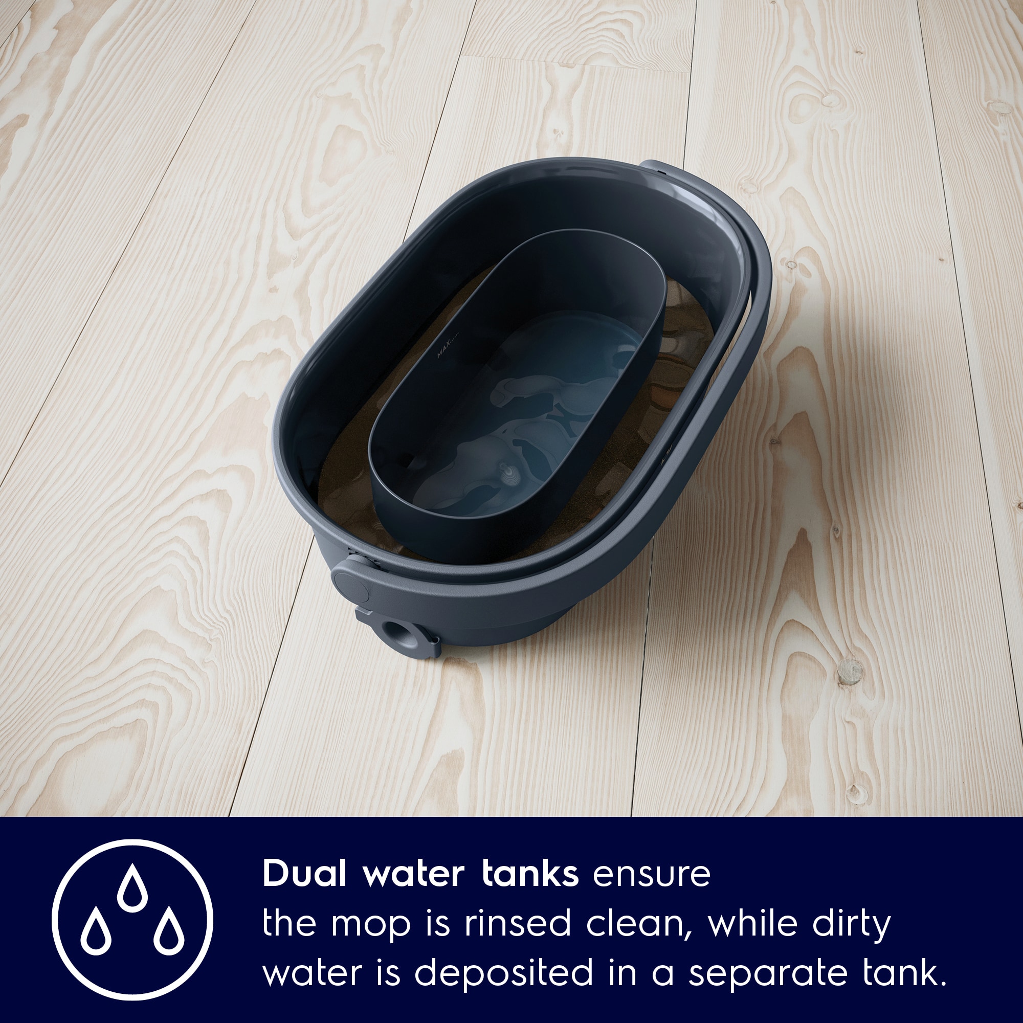 *Fem sekunder er den skylletid, der anbefales, for effektivt at fjerne husholdningssnavs fra moppepuderne. Baseret på interne tests hos Electrolux.