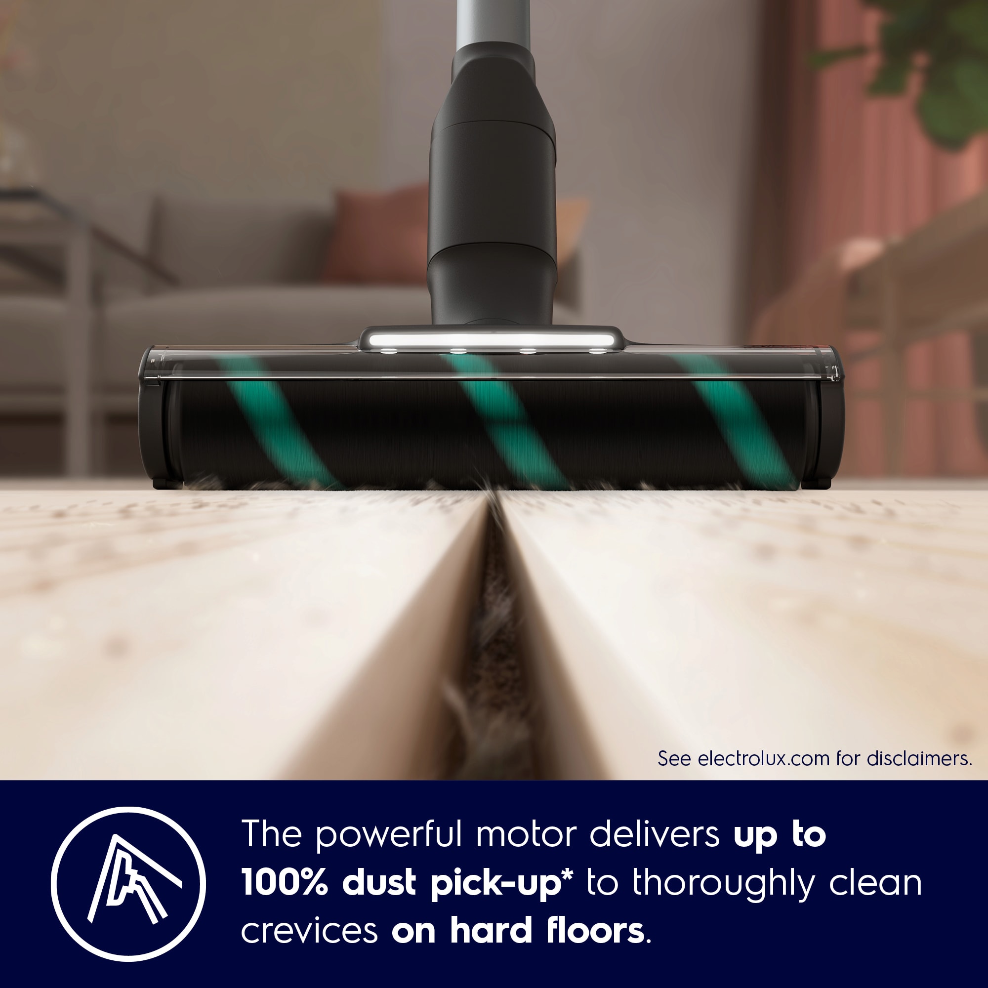 Op til 100% opsamling af støv i revner på hårde gulve