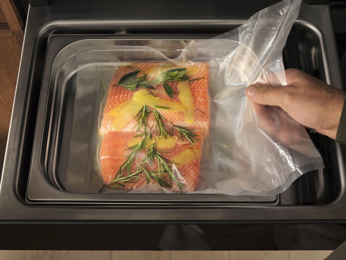 Med en vakuumpakkerskuffe får du både et køkken med et stilrent design og resultater i topklasse. Forlæng dine råvarers holdbarhed, mariner kød på få minutter og lav sous vide med præcision – ligesom restauranterne gør. Alt dette i en løsning som passer perfekt ind i dit køkken.