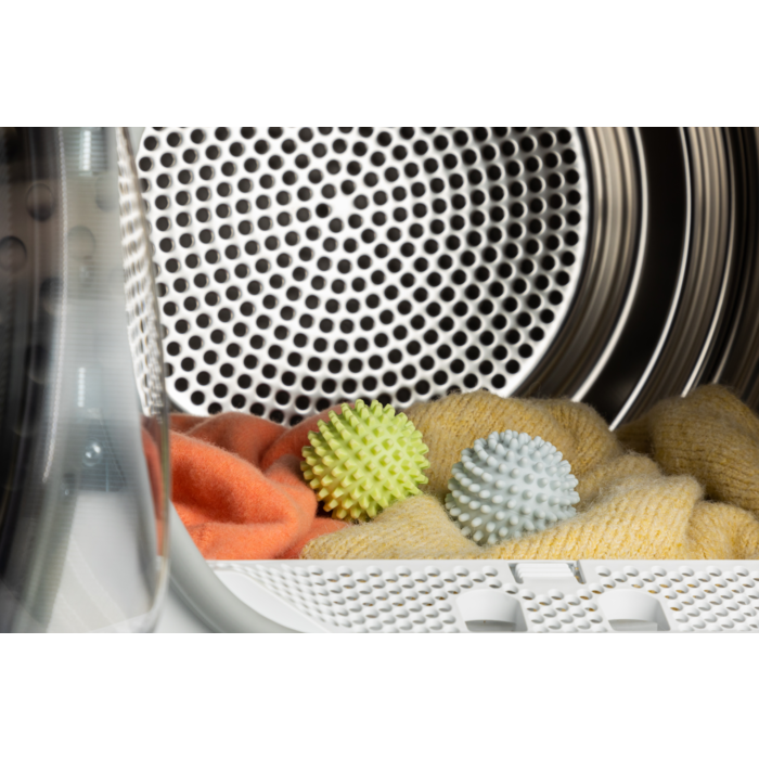Tørrebolde til tørretumblere. Reducerer tørretiden med op til 25% og gør dit vasketøj blødere. Ideel til større tekstiler som lagner, sengetøj og håndklæder. Indeholder 2 kugler (1 lyseblå og 1 lysegrøn).