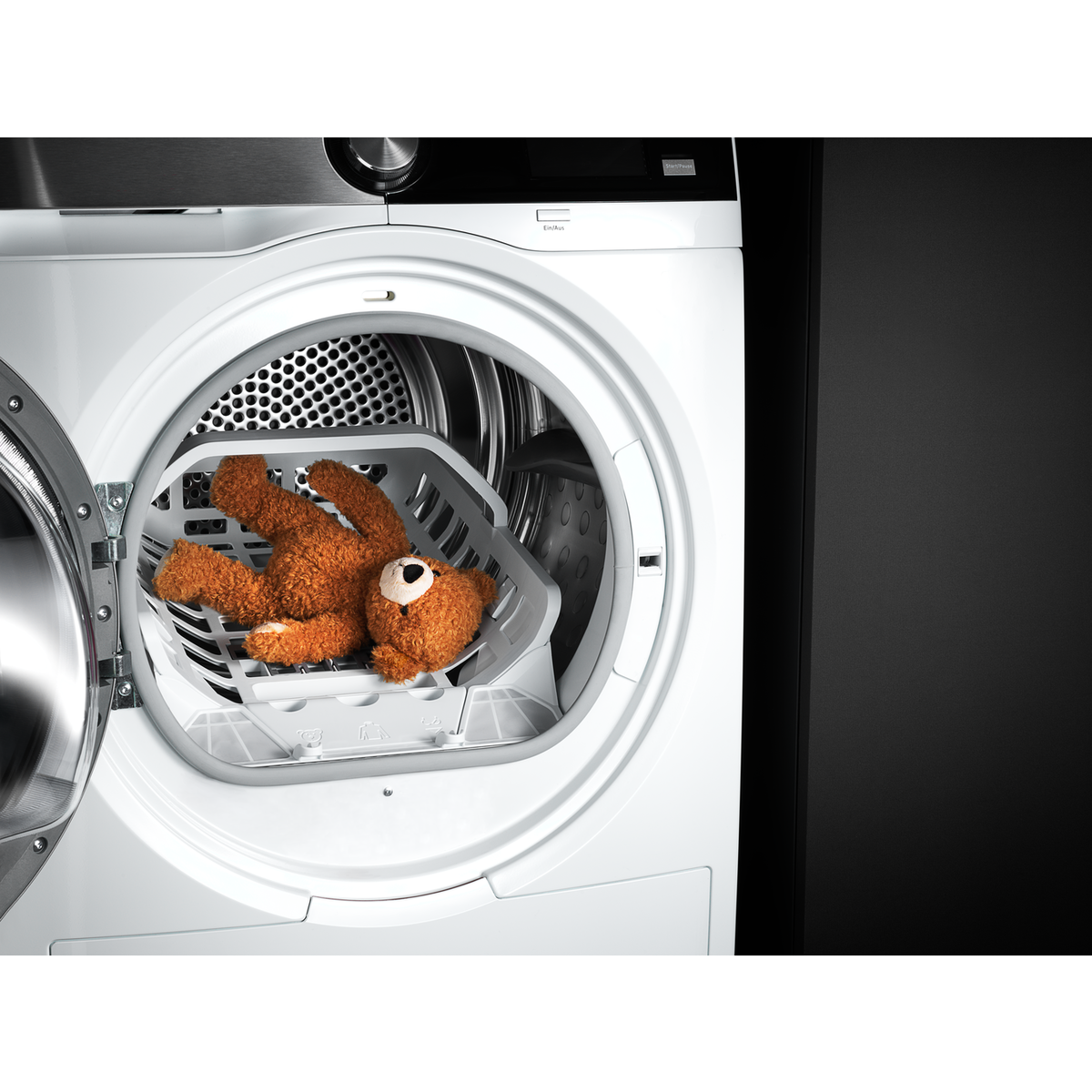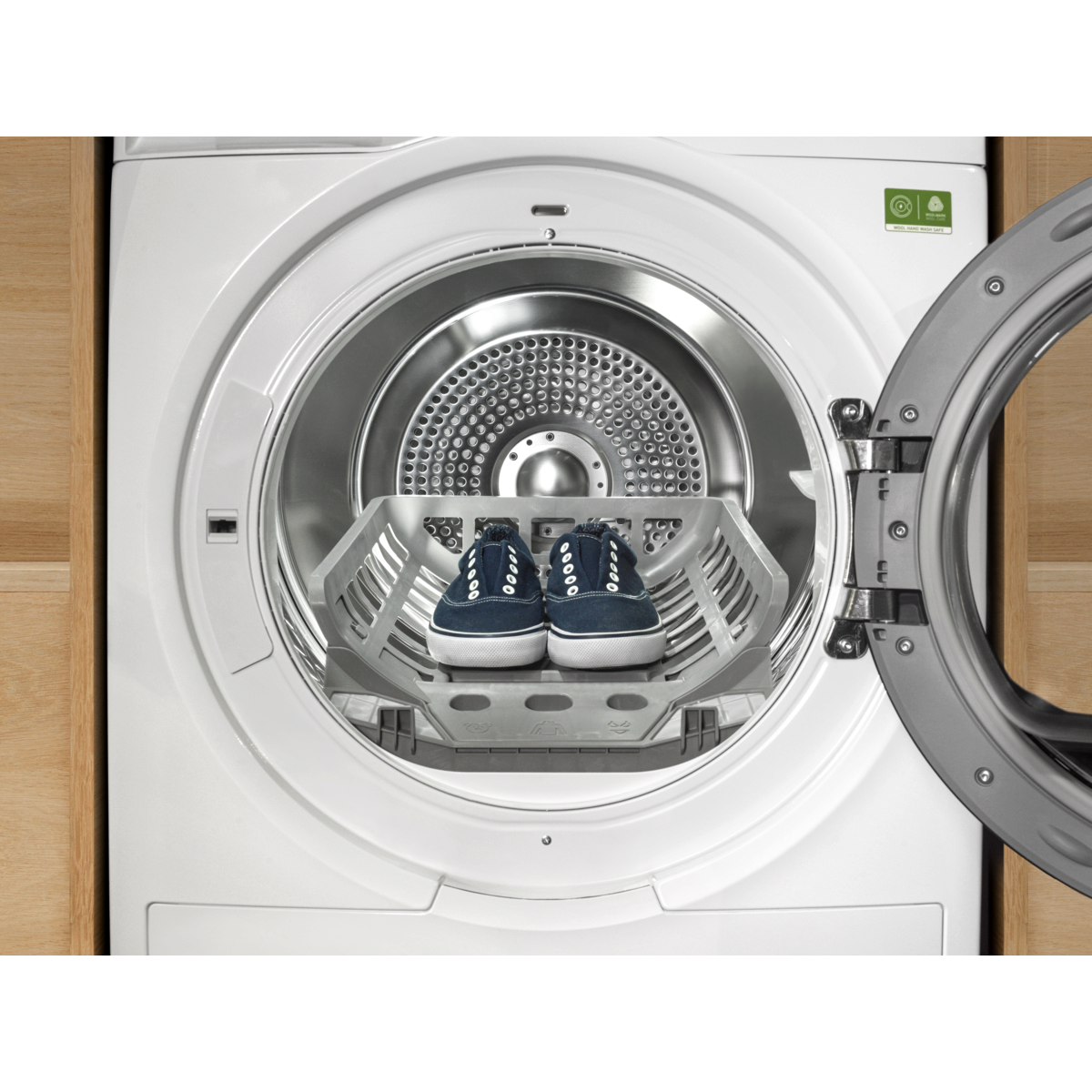 Nænsom tørring med varm luft uden behov for at tumble. Tørrestativet tørrer nænsomt sart tøj uden brug af tumblefunktion. Du placerer blot stativet i tromlen for nænsomt at tørre alt fra uldsweatre og silkebluser til blødt legetøj.