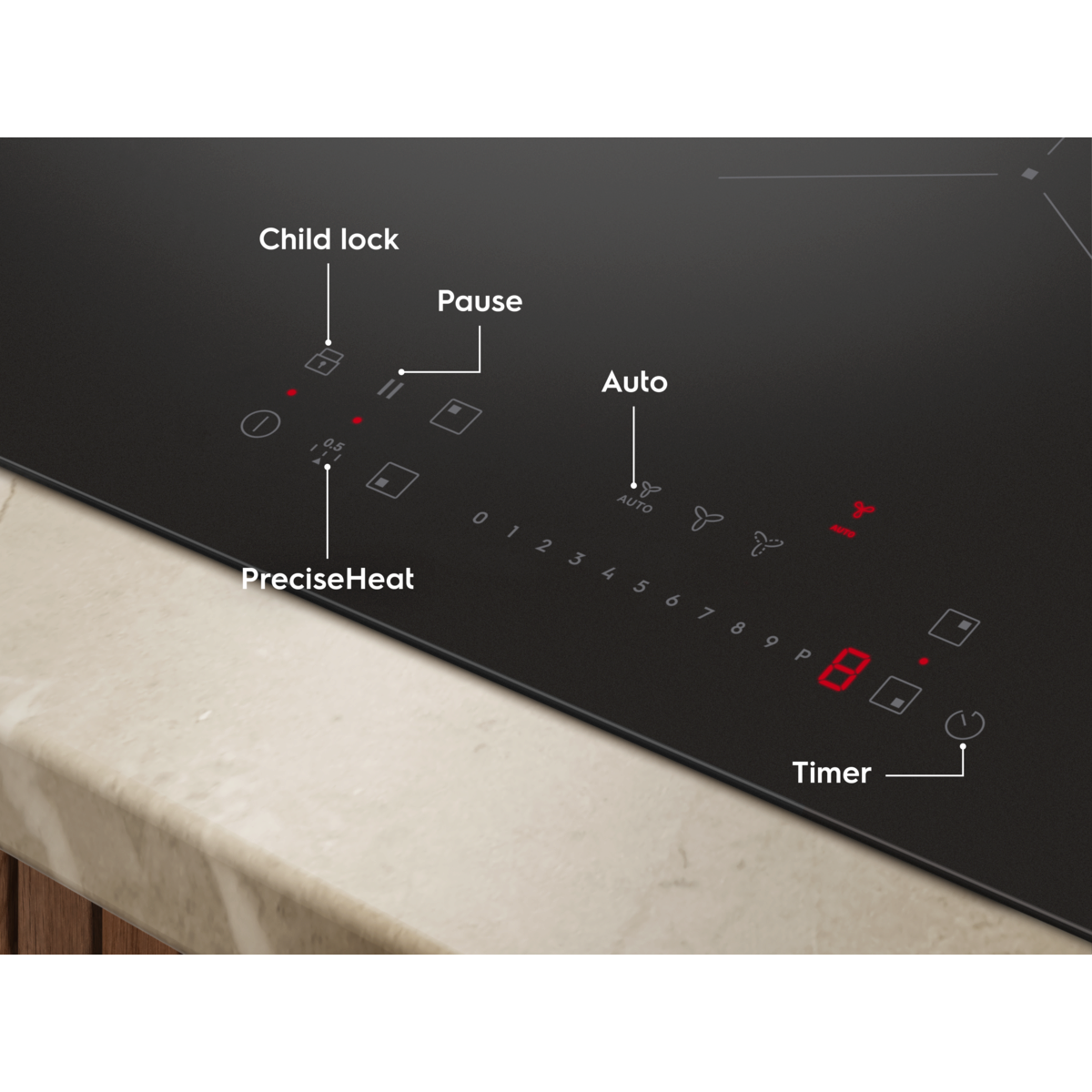 Nyd de mange fordele ved en induktionskogeplade med integreret emhætte, der giver optimal luftstrøm, som passer til et 60 cm skab. 600 Bridge kogepladen med integreret emhætte har Bridge funktion, så du kan kombinere to kogezoner til ét større område