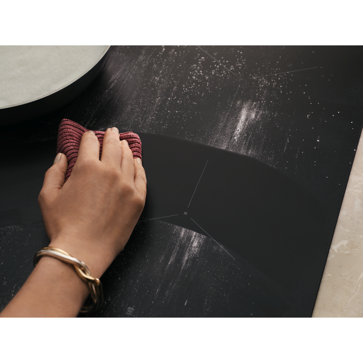 *Baseret på slidtest foretaget af eksternt schweizisk laboratorium i overensstemmelse med den internationale IEC 60068-2-70 standard. Synlighed af ridser vurderes internt og sammenlignes med vores standard keramiske kogeplader uden særlig behandling eller belægning.