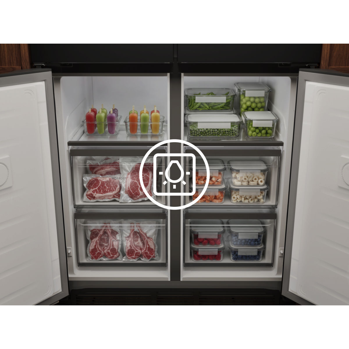 Slot In køle-/fryseskabet integreres ubesværet i indretningen. Slot In 800 MultiChill Perfect Fit passer sømløst ind i enhver køkkenløsning med sit elegante, integrerede udseende. Det firedørs design giver også mange forskellige muligheder for opbevaring af mad.