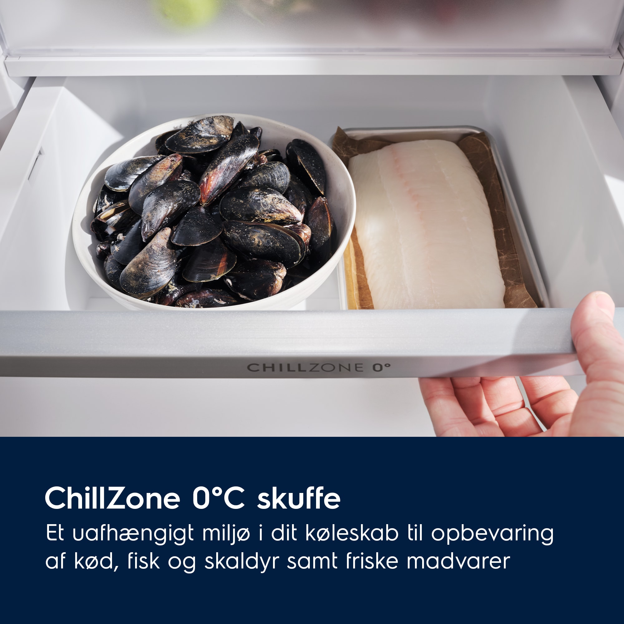 Skab gode forhold for fisk og kød med ChillZone 0° skuffen