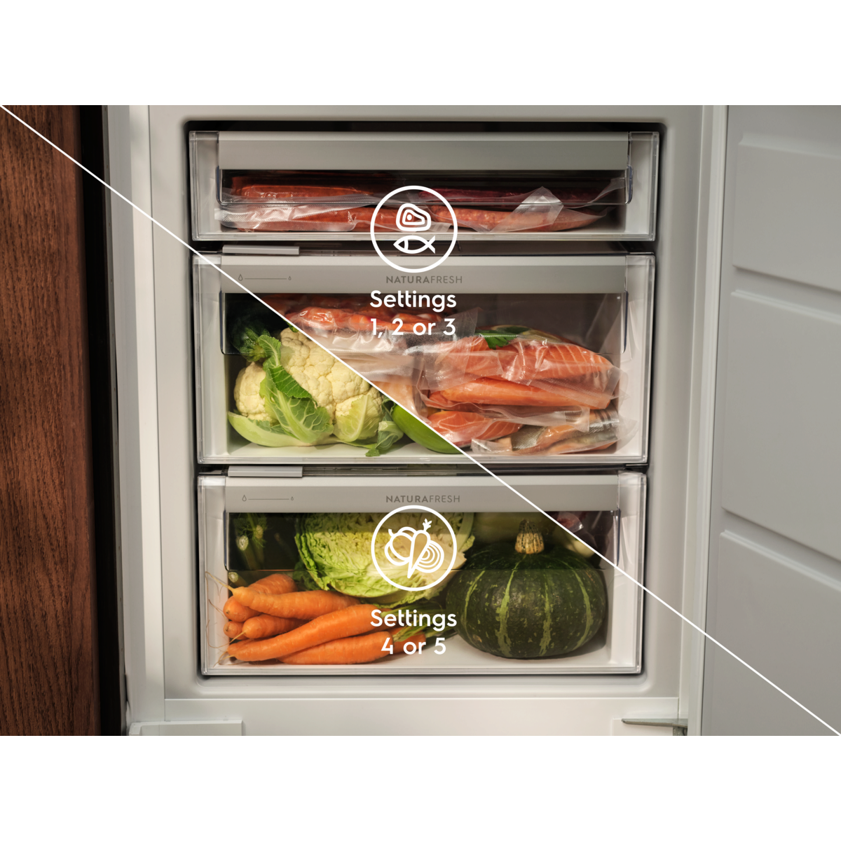 Maksimal beskyttelse af dine råvarer. De uafhængige afdelinger i 900 NaturaFresh Køleskabet skaber dedikerede betingelser for dine råvarer. Luftfugtigheden er justerbar, og rummet kan holdes ved 0°C, den ideelle temperatur til opbevaring af fisk eller kød.