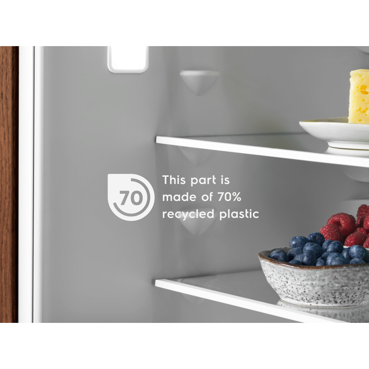 *Indvendig beklædning af rHIPS af op til 70% genanvendt plast, hvilket udgør 13% af alt plast i køleskabet”