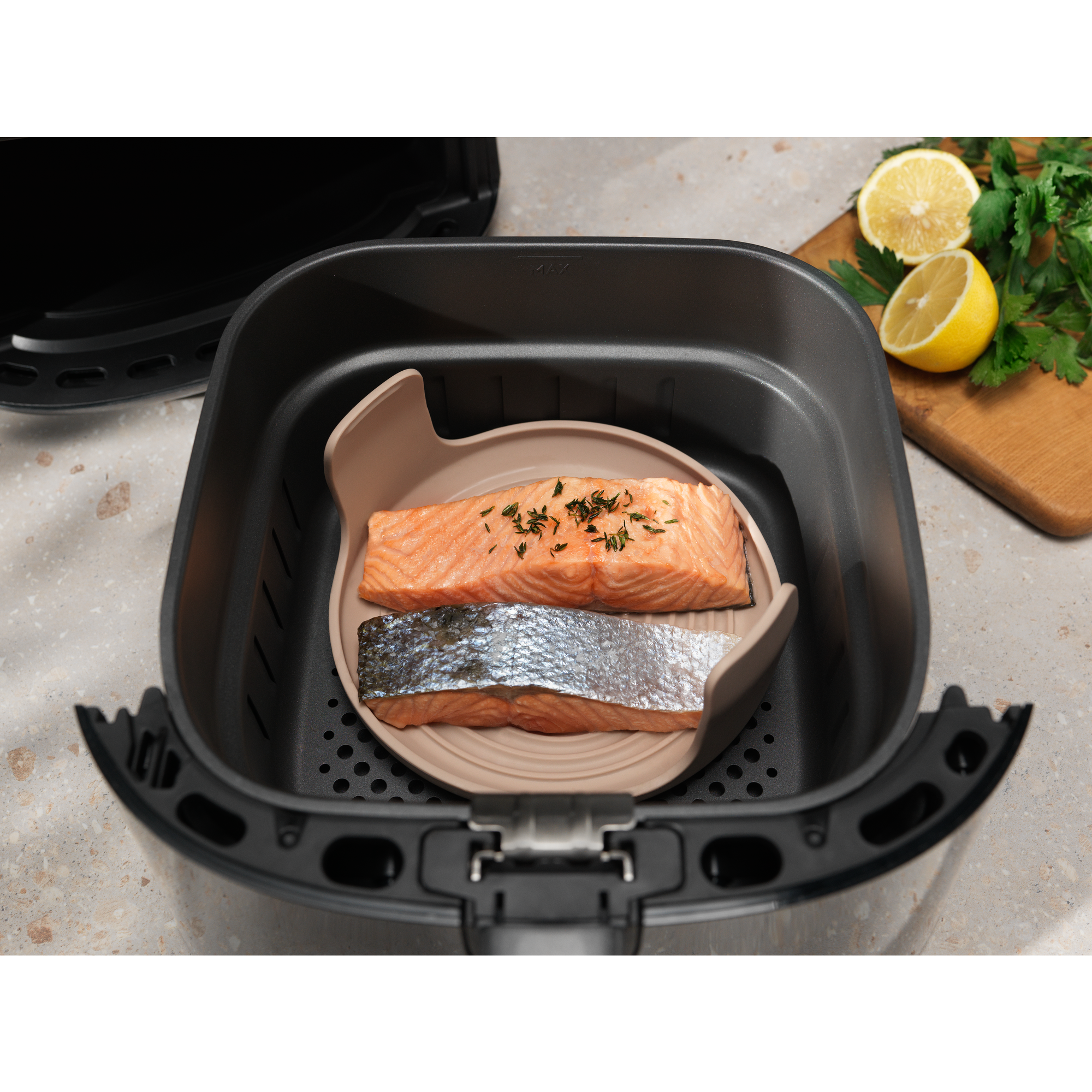 AirFry Taste Elevation Kit. Et sæt med tre dele, der er designet til at gøre madlavning med AirFryer velsmagende, ubesværet og fri for rod.