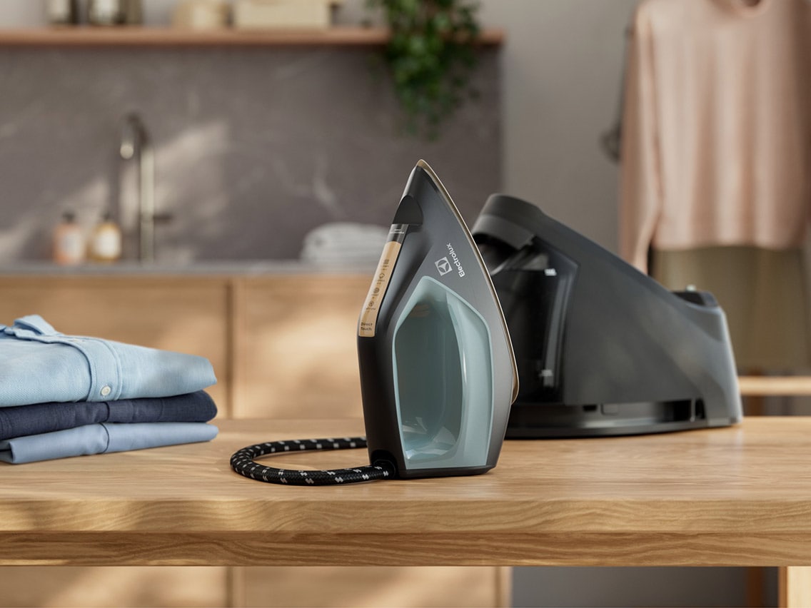 Se vores strygejern med dampstation – giver professionelle resultater derhjemme. Den store vandtank genererer løbende kraftfuld damp, så du kan fjerne rynker og folder i tøjet mere effektivt.