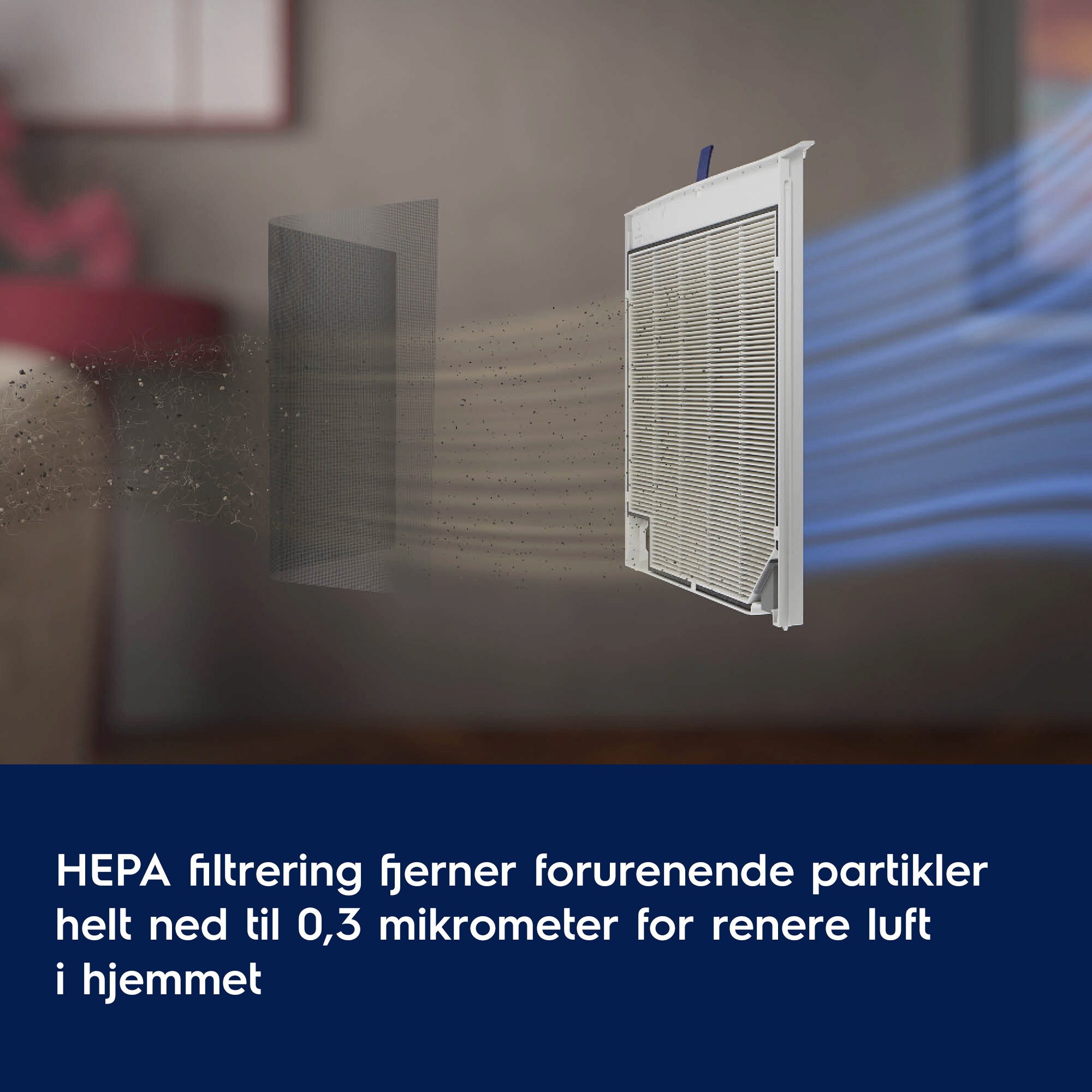 ¹Baseret på intern test ifølge GB7725 standarden, der måler lydniveauet 1 meter foran produktet ved laveste blæserhastighed.