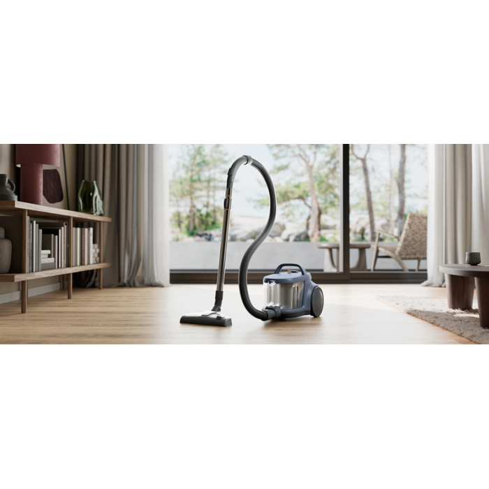 Kompakt styrke, nem rengøring. Denne praktisk designede støvsuger har 2 l støvbeholder, kompakt design for nem opbevaring og cyklonadskillelse, som forhindrer tilstopning. Med HEPA-filtrering og miljøvenlig genanvendt plast er den effektiv og bæredygtig.