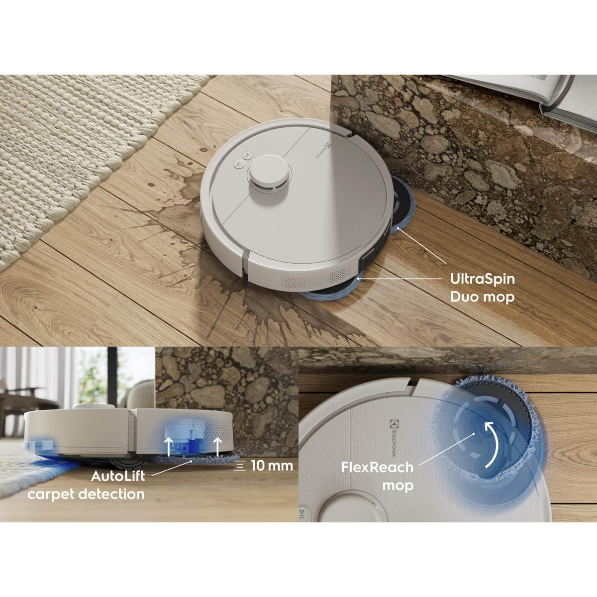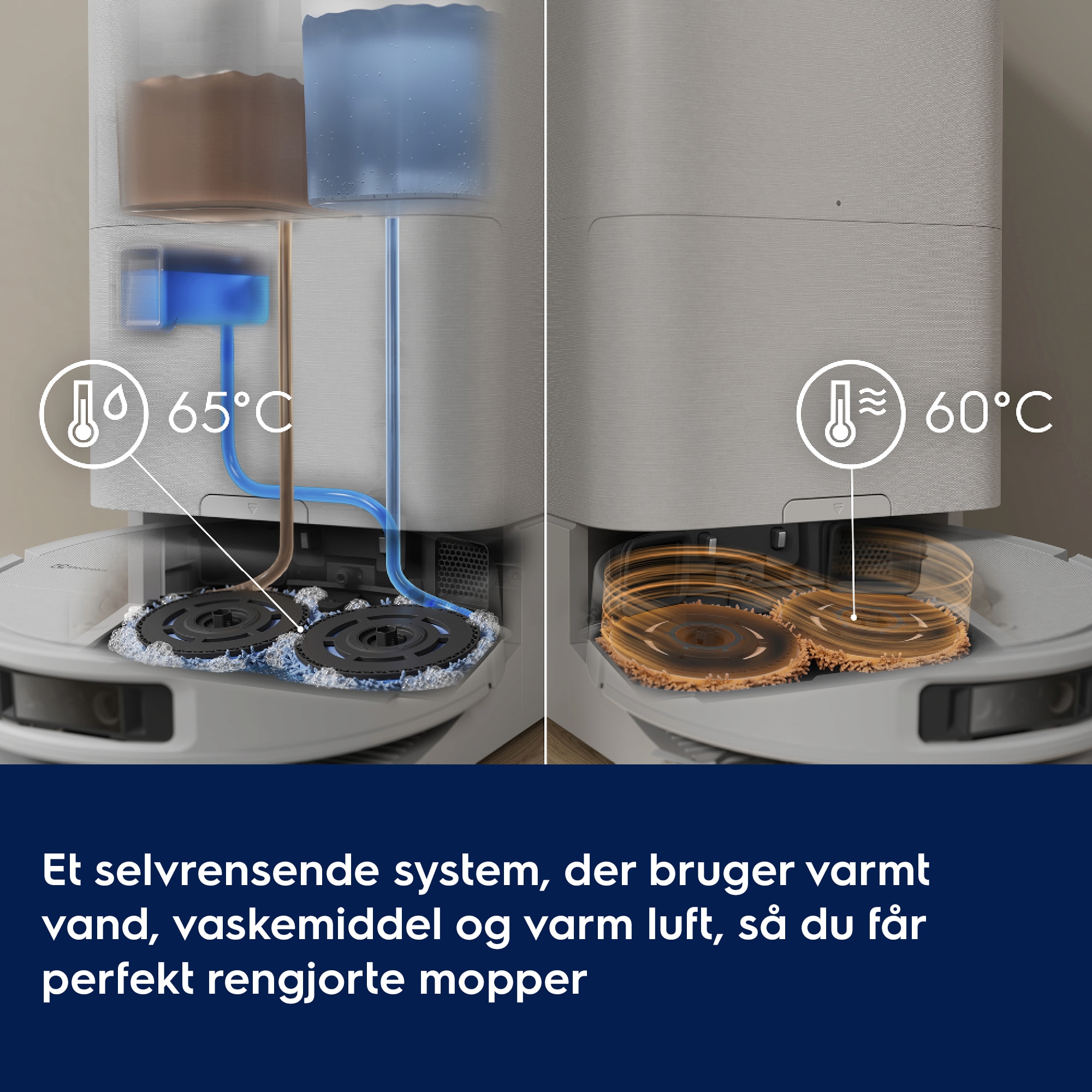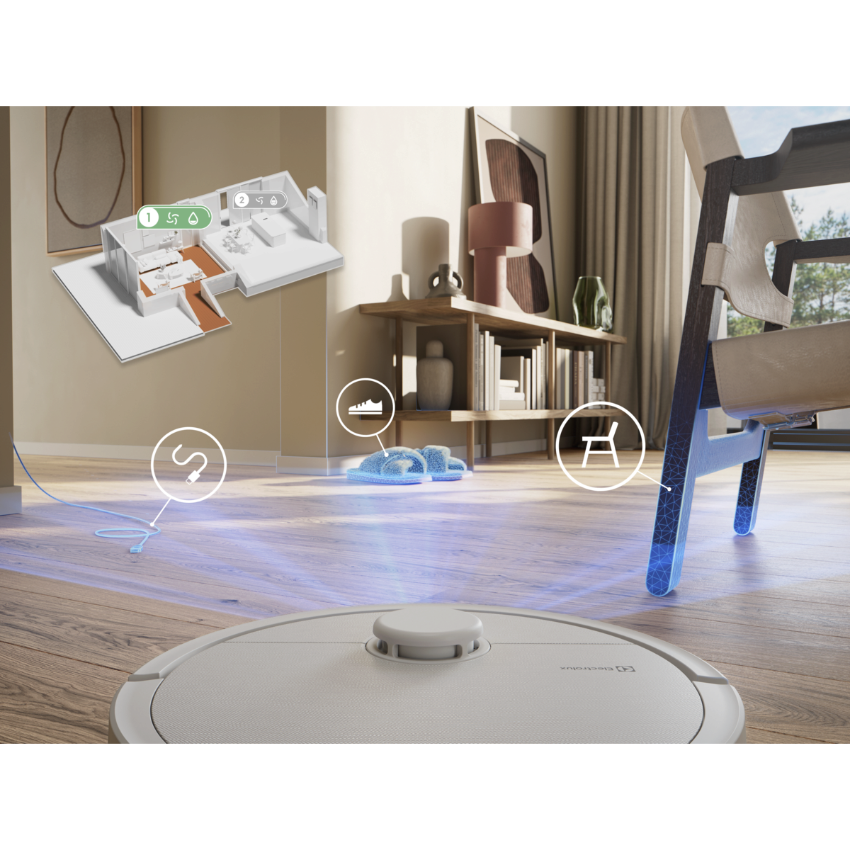 Glem alt om støvsugning og gulvvask. 800 Robotstøvsugeren med alt-i-én station klarer rengøringen, selv når du væk hjemmefra. Bare indstil robotstøvsugeren og fortsæt med din dag, mens den nemt og ubesværet navigerer rundt om møbler, rengør gulvtæpper, vasker gulvet og fjerner snavs.