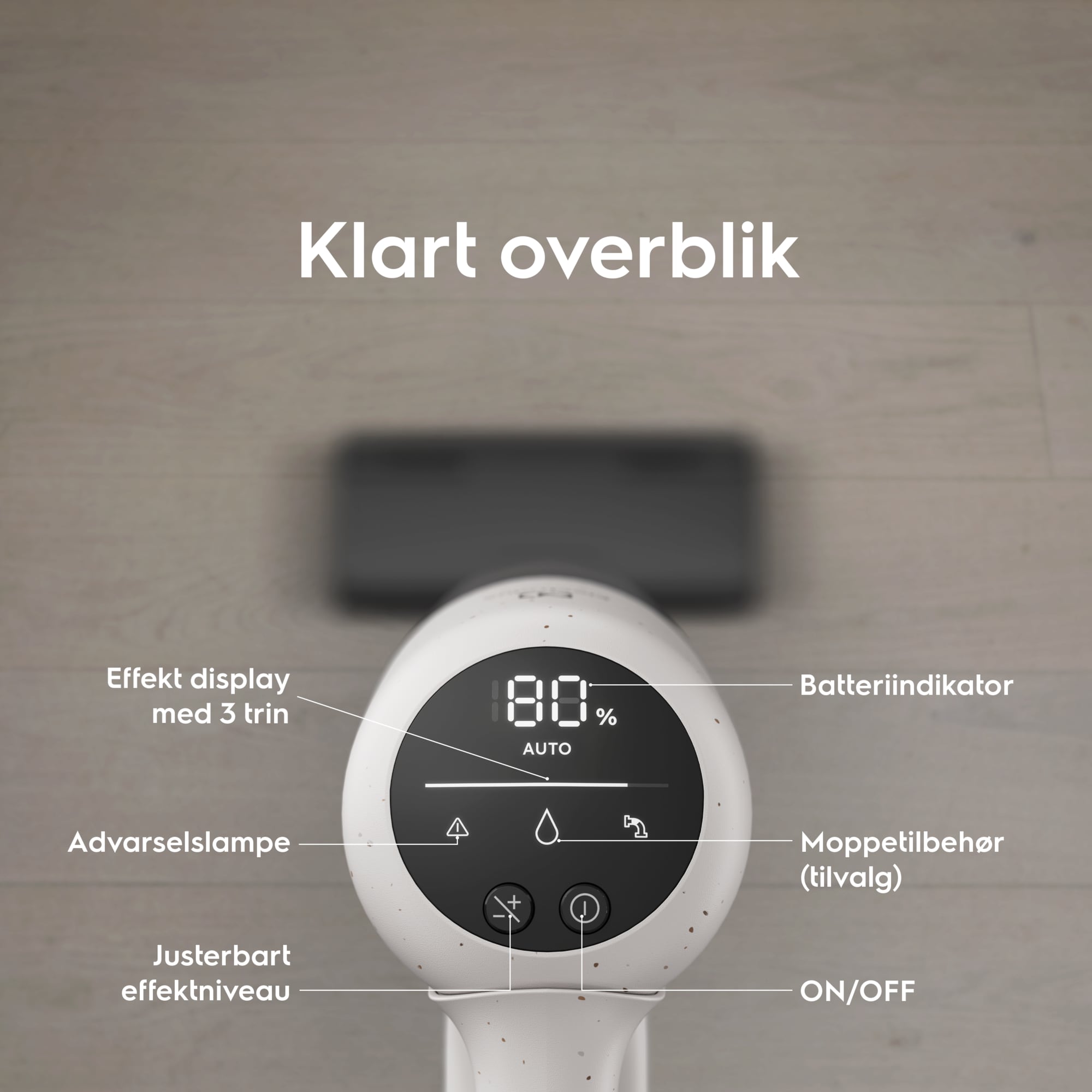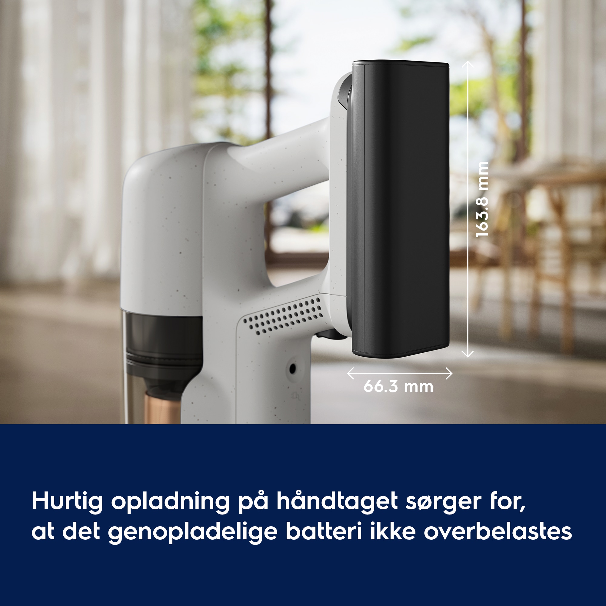 *Sammenlignet med køretid i Boost tilstand. **Baseret på interne tests ifølge IEC 62885-4 standarden, der måler køretiden for håndholdt enhed og fuld støvsuger i min. tilstand.