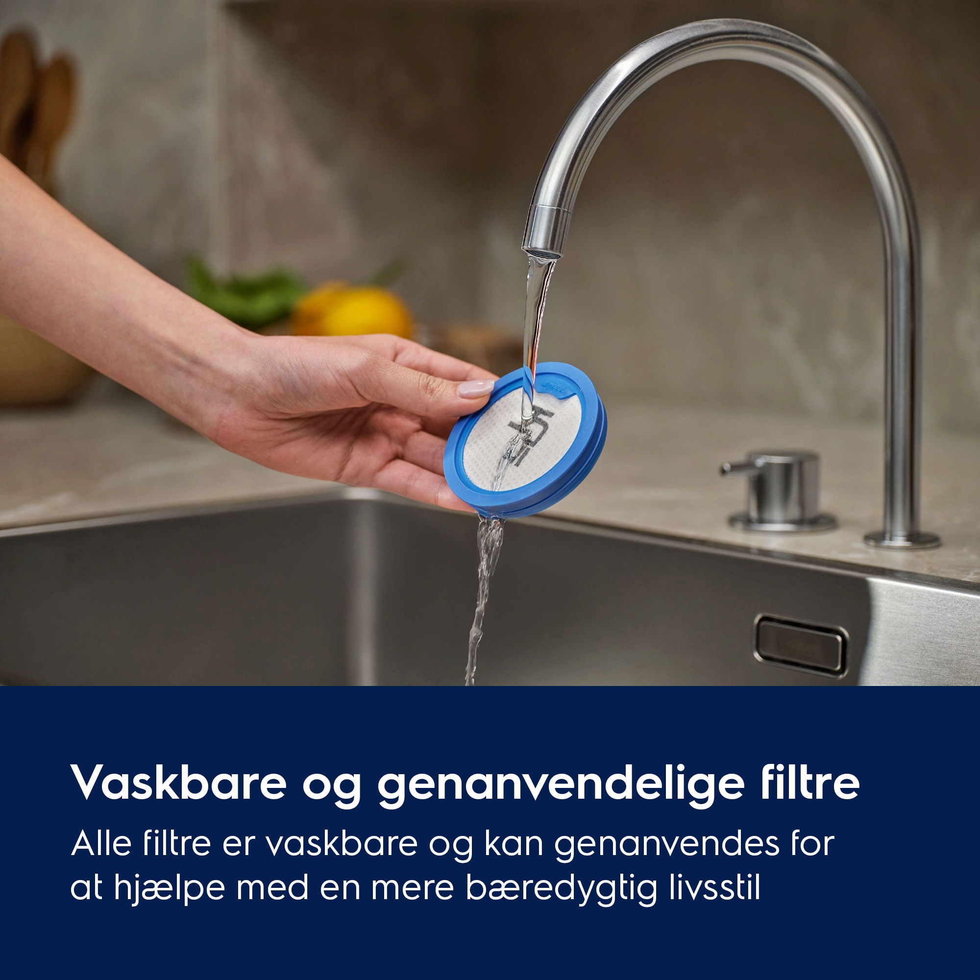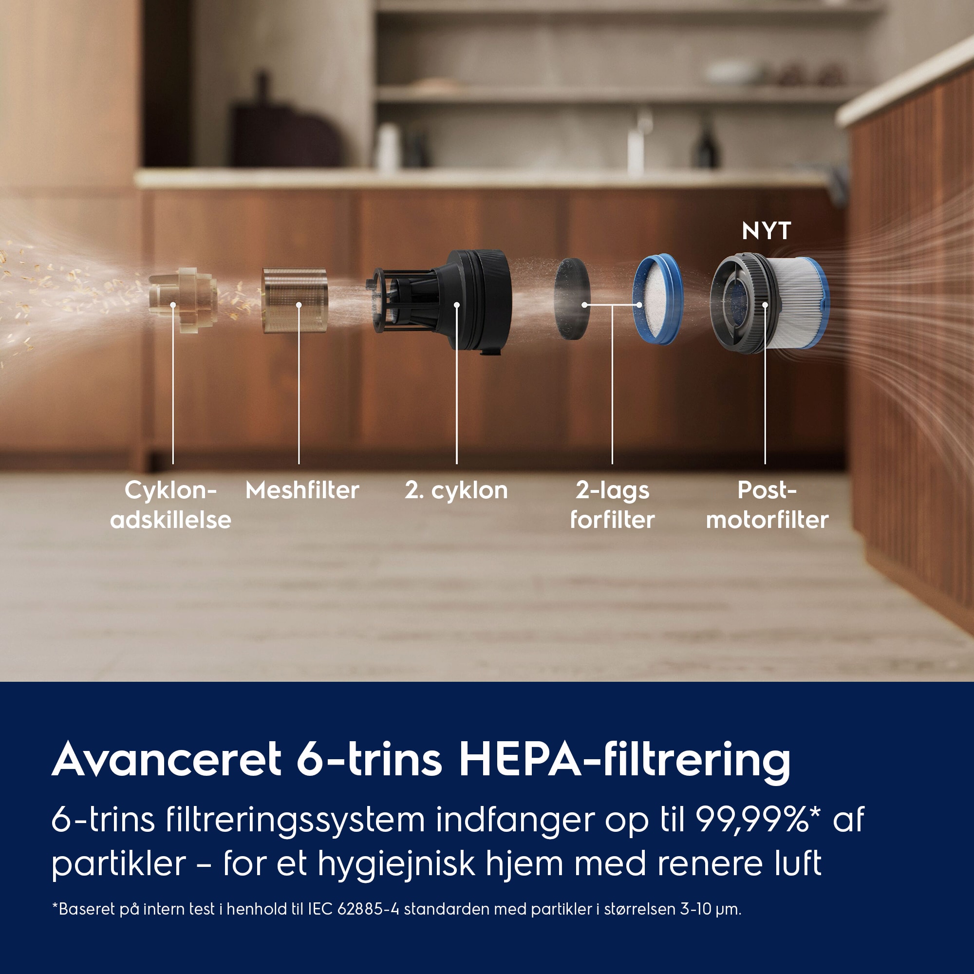 Baseret på intern test med partikler i størrelsen 0,3-10 µm ifølge IEC 62885-4 standarden.