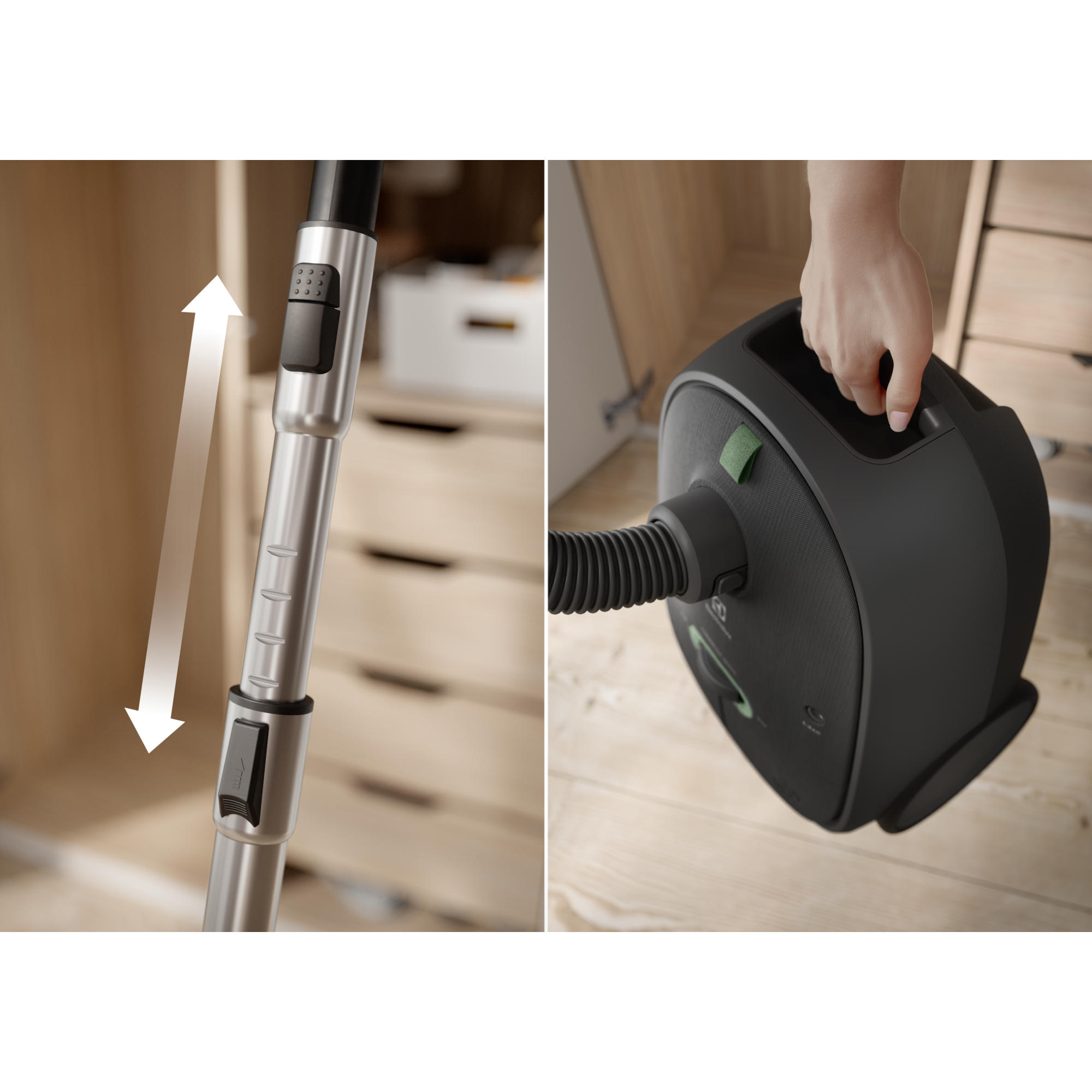 Clean 600 Green Bagged støvsuger, hvor 65% af den anvendte plastik er genbrugt, leverer en kompromisløs rengøringsydelse. Føres hos udvalgte forhandlere.