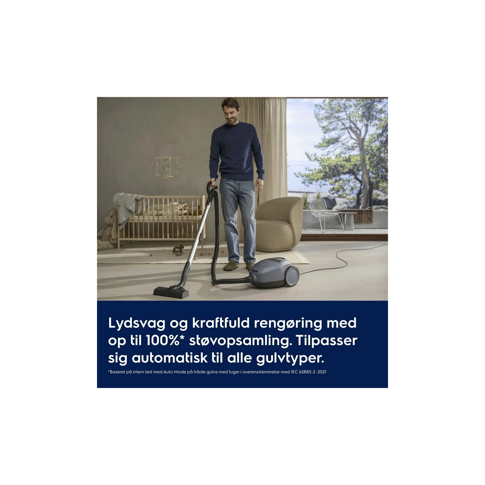 Lydsvag og kraftfuld rengøring med op til 100%* støvopsamling. 700 Silent støvsuger med pose leverer en effektiv og bemærkelsesværdig lydsvag rengøring. Dens effektive luftcirkulation, Auto Mode og avancerede HEPA filtrering samarbejder om at give en optimal ydeevne og uovertrufne rengøringsresultater.