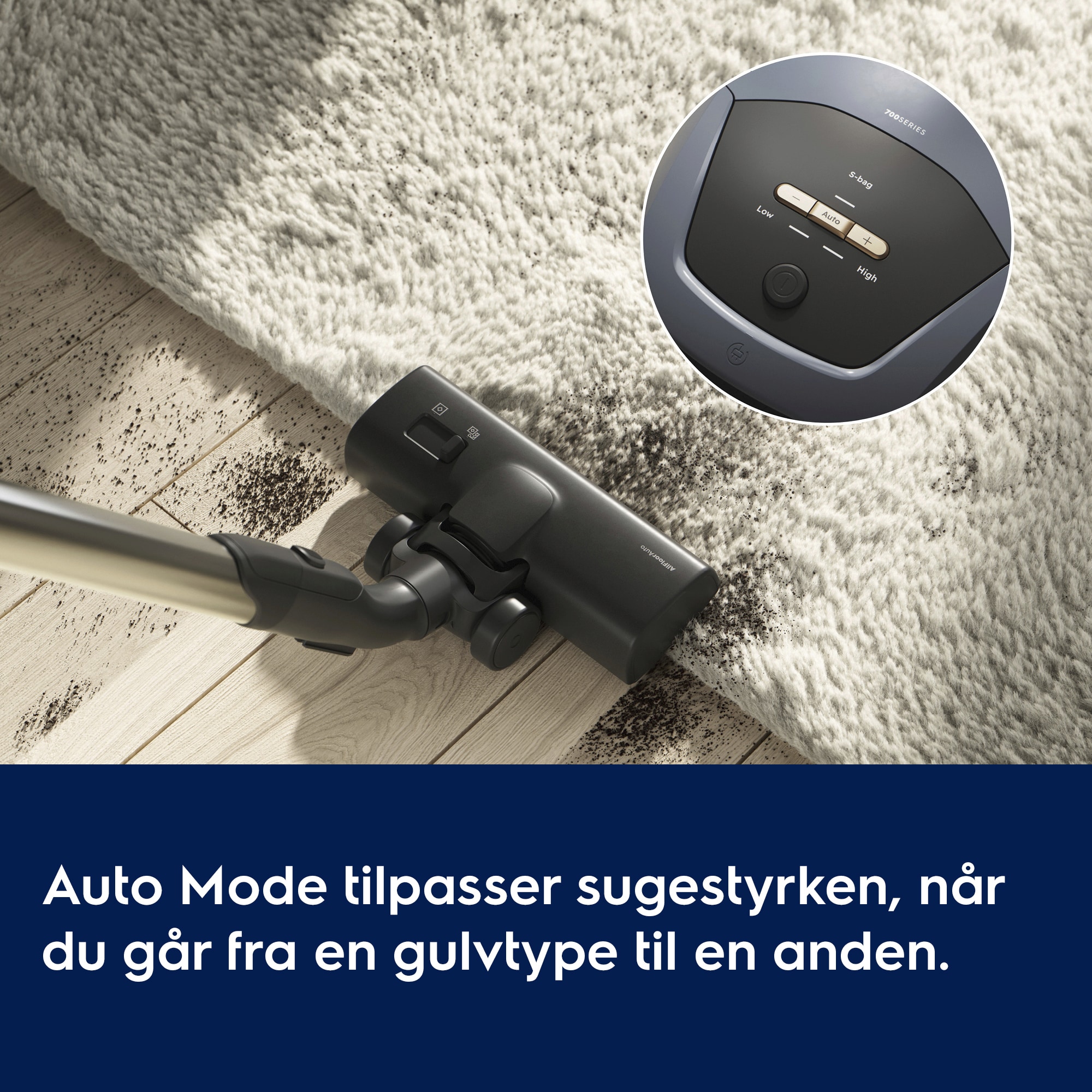 *Baseret på en sammenligning af det maksimalt målte energiforbrug med henholdsvis High og Auto Mode ved brug på tæppe.