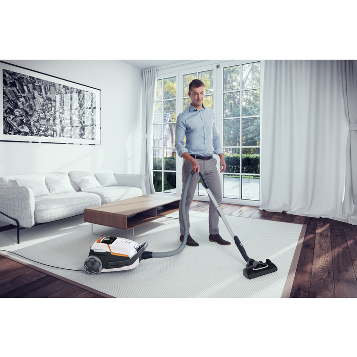 UltraOne Origin har manuel regulering af sugestyrken og er udstyret med det ultra effektive FlowMotion mundstykke, det komfortable AeroPro™ Classic-håndtag og det integrerede AeroPro 3-i-1 tilbehør.